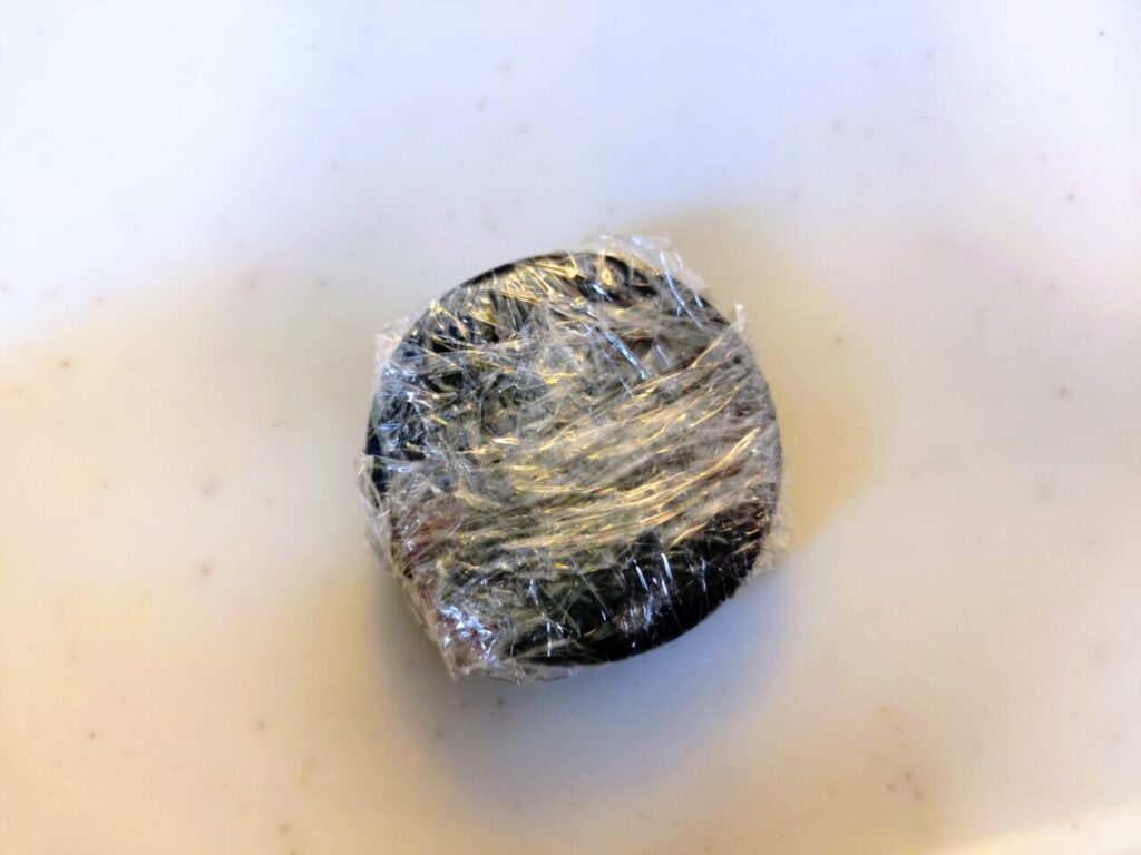 念のためラップでくるむ(テープのべたつき防止を兼ねる!)