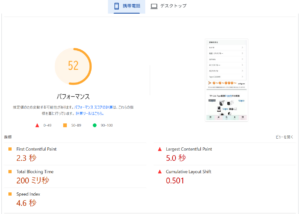 そう期待しながら、WEBパフォーマンスをPageSpeed Insightsで測定してみました。